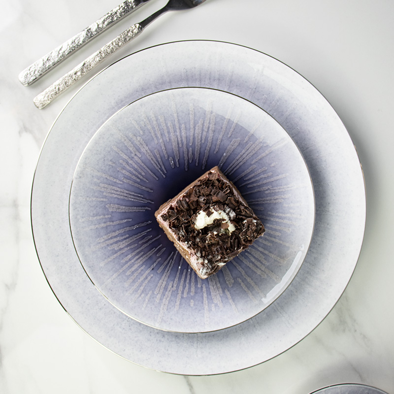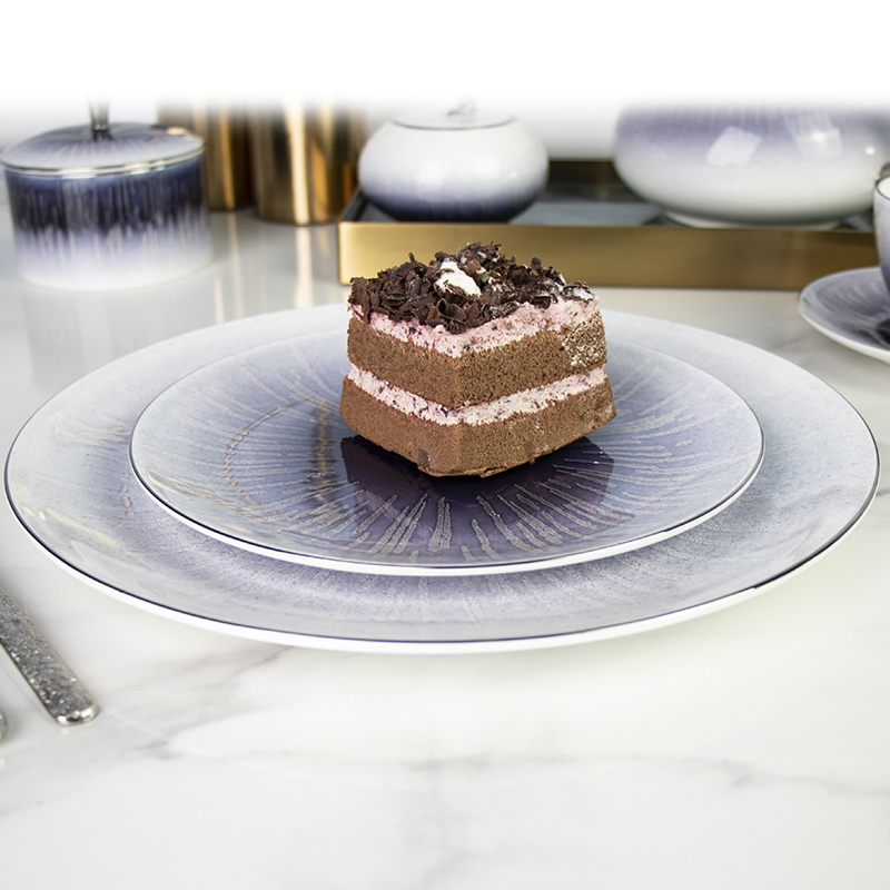ミシュランレストラン食器ボーンチャイナスカイライトブルーディナープレートゴールドリムスポット食器ホテル用