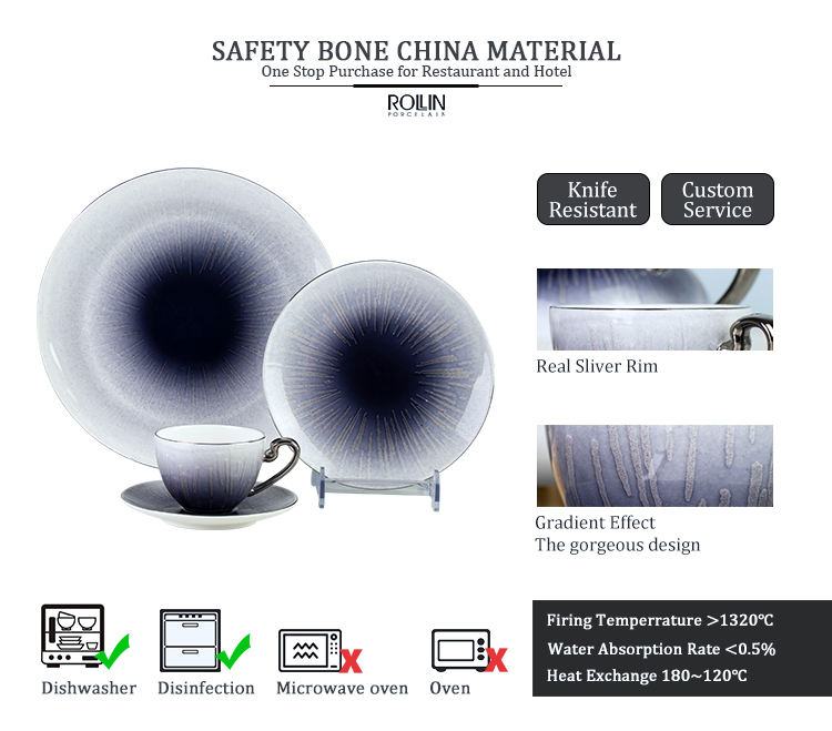 青と白のボーン チャイナ ディナー セット ホテル サプライヤー
