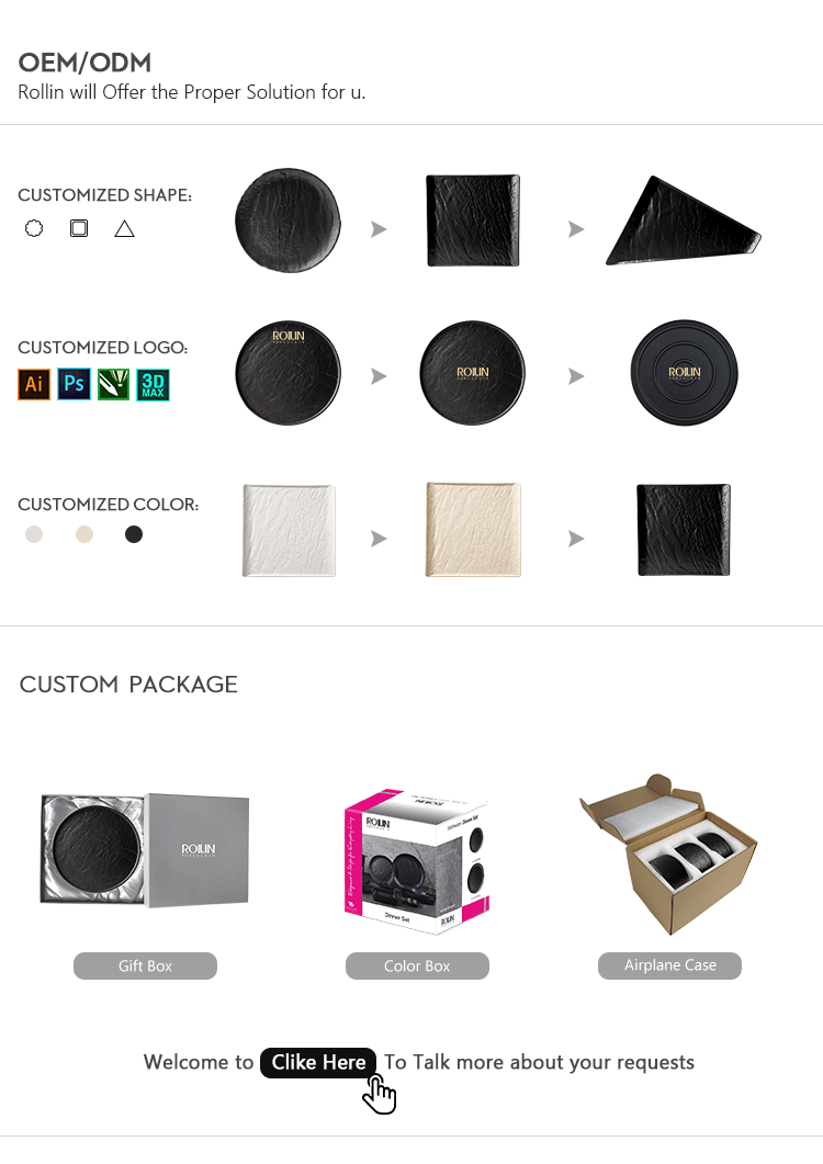 あなたが再販業者の場合、レストランのバイヤーが注文を希望しています。棚で再販するか、3 ~ 12 個をセットで販売するのに最適です。様々なサイズや形のプレートを多数ご用意しております。カタログ確認のご依頼などお気軽にお問い合わせください。